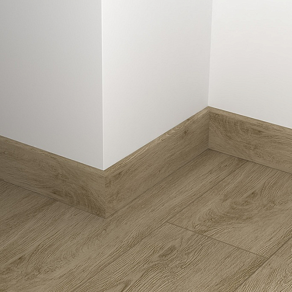 Монтаж плинтусных плашек прост. Все элементы соединяются с помощью замков, так что сбор обрамления не займет много времени. На нижней поверхности плашек есть выемки, в которые можно уложить провода, тонкие трубы. Так можно скрыть коммуникации, проходящие вдоль стен.