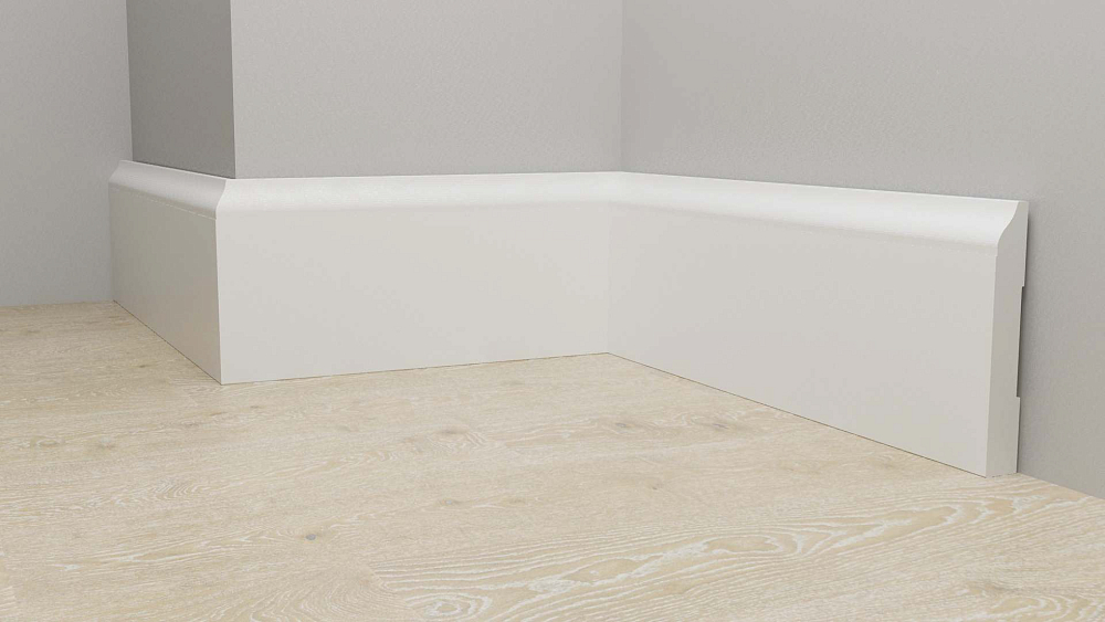 Монтаж плинтусных плашек прост. Все элементы соединяются с помощью замков, так что сбор обрамления не займет много времени. На нижней поверхности плашек есть выемки, в которые можно уложить провода, тонкие трубы. Так можно скрыть коммуникации, проходящие вдоль стен.
