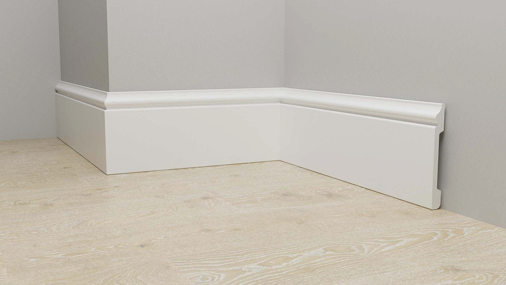 Монтаж плинтусных плашек прост. Все элементы соединяются с помощью замков, так что сбор обрамления не займет много времени. На нижней поверхности плашек есть выемки, в которые можно уложить провода, тонкие трубы. Так можно скрыть коммуникации, проходящие вдоль стен.