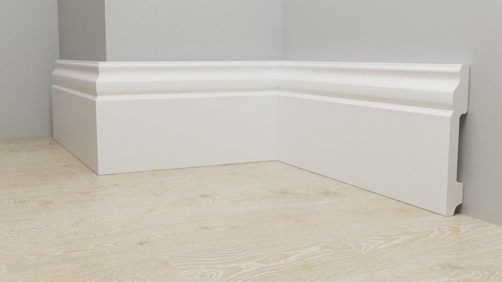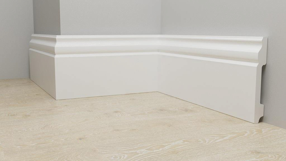 Монтаж плинтусных плашек прост. Все элементы соединяются с помощью замков, так что сбор обрамления не займет много времени. На нижней поверхности плашек есть выемки, в которые можно уложить провода, тонкие трубы. Так можно скрыть коммуникации, проходящие вдоль стен.