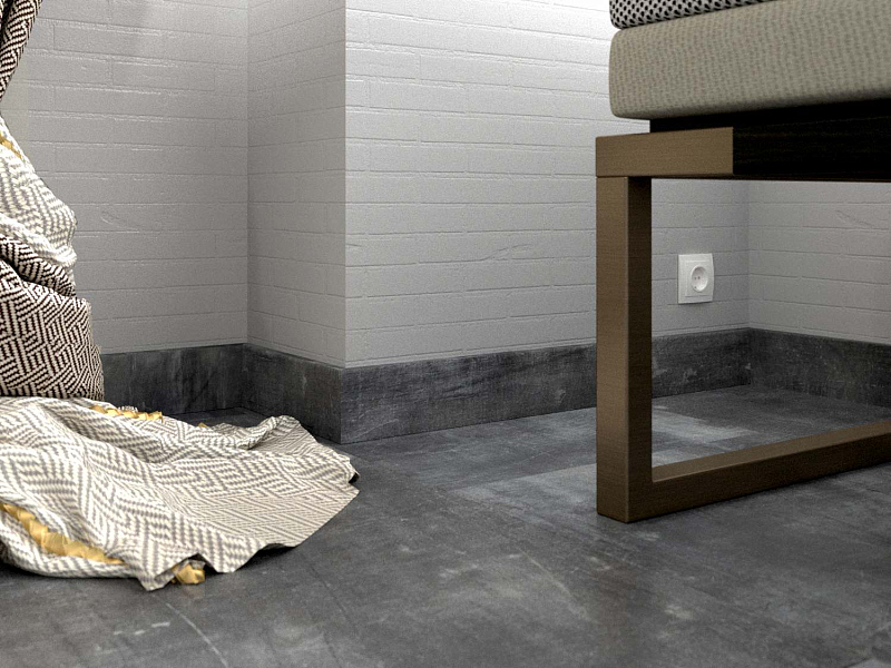 Сделаны плашки из MDF, ПВХ. Этот материал хорошо сочетается с любым стилевым оформлением комнаты, гармонирует с разными настенными, напольными и потолочными покрытиями. Оттенок Темно-серый вписывается в разное цветовое оформление пола, становясь тем самым акцентом, который делает напольное покрытие законченным. Плинтус можно укладывать с полами из ламината, линолеума, досок, ковролина, подбирая цвет под оттенок половиц или играя на контрасте.