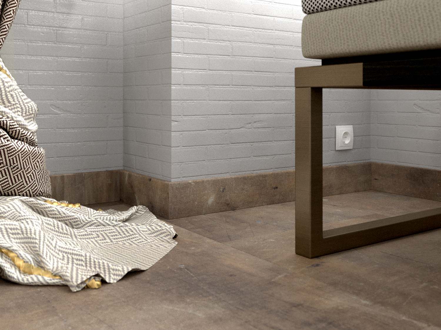 Монтаж плинтусных плашек прост. Все элементы соединяются с помощью замков, так что сбор обрамления не займет много времени. На нижней поверхности плашек есть выемки, в которые можно уложить провода, тонкие трубы. Так можно скрыть коммуникации, проходящие вдоль стен.