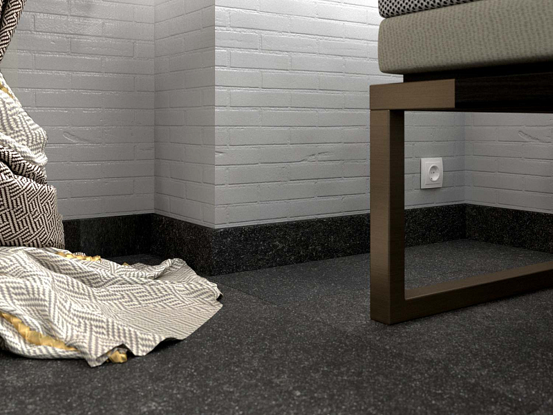 Сделаны плашки из MDF, ПВХ. Этот материал хорошо сочетается с любым стилевым оформлением комнаты, гармонирует с разными настенными, напольными и потолочными покрытиями. Оттенок Черный вписывается в разное цветовое оформление пола, становясь тем самым акцентом, который делает напольное покрытие законченным. Плинтус можно укладывать с полами из ламината, линолеума, досок, ковролина, подбирая цвет под оттенок половиц или играя на контрасте.