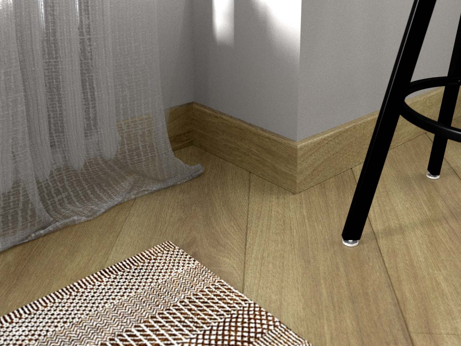 Монтаж плинтусных плашек прост. Все элементы соединяются с помощью замков, так что сбор обрамления не займет много времени. На нижней поверхности плашек есть выемки, в которые можно уложить провода, тонкие трубы. Так можно скрыть коммуникации, проходящие вдоль стен.