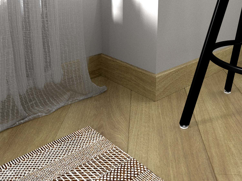 Сделаны плашки из MDF, ПВХ. Этот материал хорошо сочетается с любым стилевым оформлением комнаты, гармонирует с разными настенными, напольными и потолочными покрытиями. Оттенок Светло-коричневый вписывается в разное цветовое оформление пола, становясь тем самым акцентом, который делает напольное покрытие законченным. Плинтус можно укладывать с полами из ламината, линолеума, досок, ковролина, подбирая цвет под оттенок половиц или играя на контрасте.