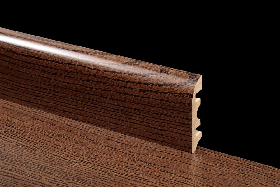 Сделаны плашки из MDF. Этот материал хорошо сочетается с любым стилевым оформлением комнаты, гармонирует с разными настенными, напольными и потолочными покрытиями. Оттенок Темно-коричневый вписывается в разное цветовое оформление пола, становясь тем самым акцентом, который делает напольное покрытие законченным. Плинтус можно укладывать с полами из ламината, линолеума, досок, ковролина, подбирая цвет под оттенок половиц или играя на контрасте.