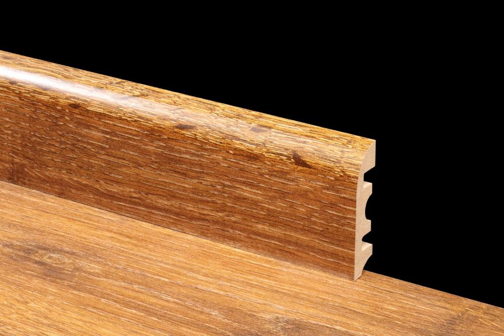 Сделаны плашки из MDF. Этот материал хорошо сочетается с любым стилевым оформлением комнаты, гармонирует с разными настенными, напольными и потолочными покрытиями. Оттенок Коричневый вписывается в разное цветовое оформление пола, становясь тем самым акцентом, который делает напольное покрытие законченным. Плинтус можно укладывать с полами из ламината, линолеума, досок, ковролина, подбирая цвет под оттенок половиц или играя на контрасте.
