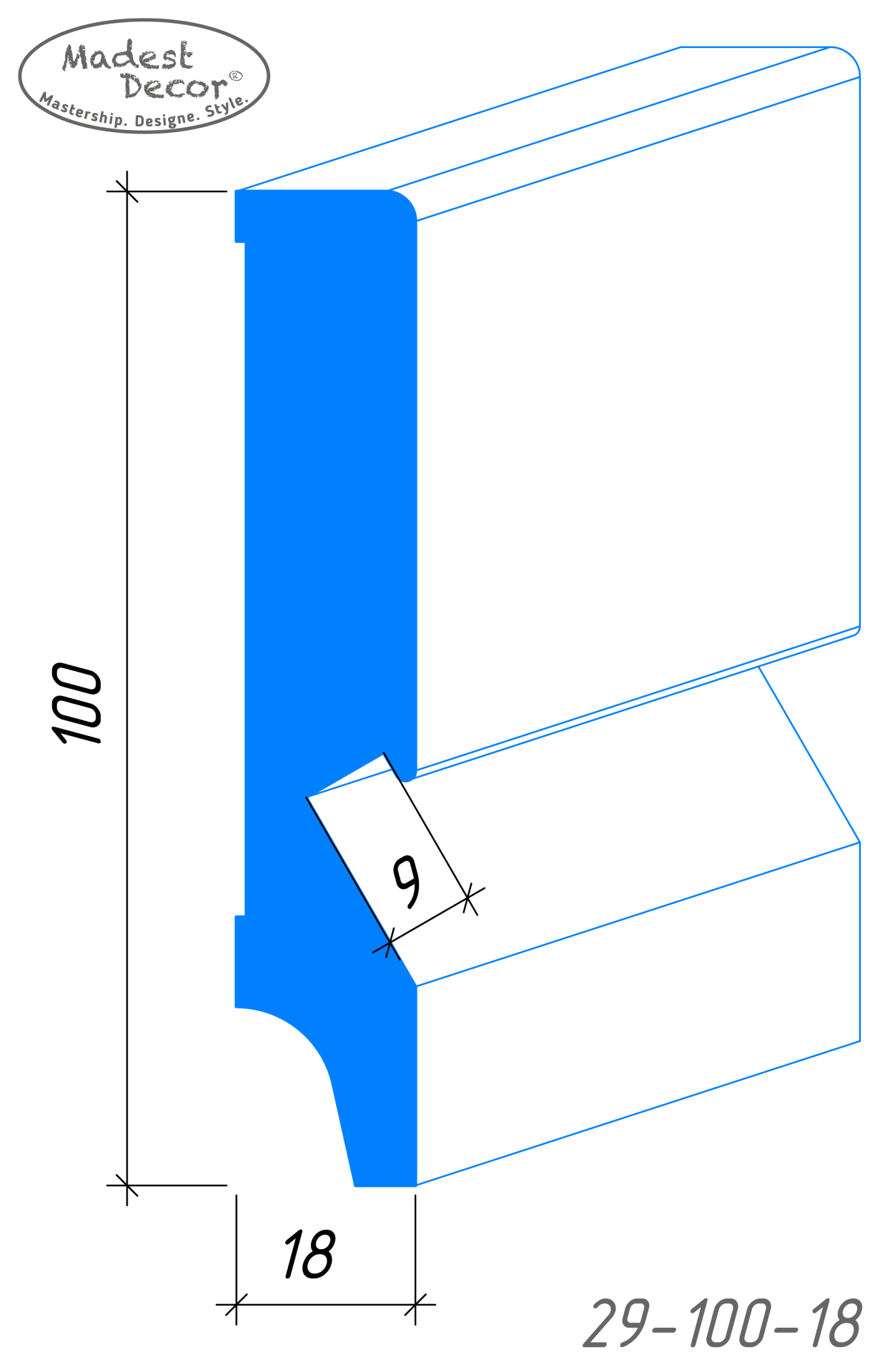 ПЛИНТУС Madest Decor МДФ 29-100-18: описание, фото, характеристики и аксессуары.