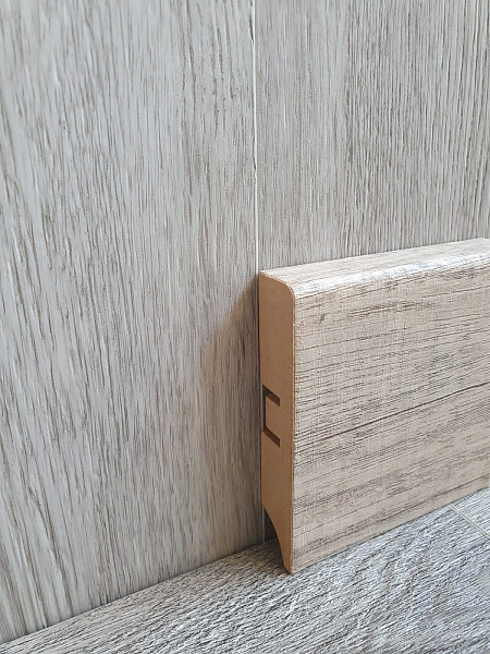 Сделаны плашки из MDF. Этот материал хорошо сочетается с любым стилевым оформлением комнаты, гармонирует с разными настенными, напольными и потолочными покрытиями. Оттенок Бежевый вписывается в разное цветовое оформление пола, становясь тем самым акцентом, который делает напольное покрытие законченным. Плинтус можно укладывать с полами из ламината, линолеума, досок, ковролина, подбирая цвет под оттенок половиц или играя на контрасте.